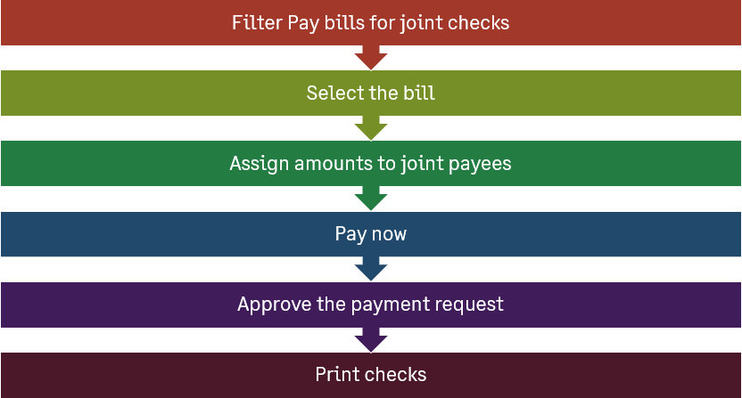 - Filter the bills: In Pay Bills, filter for bills with joint payees by selecting the Joint check payment method.