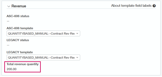 - In the Revenue template 1 and/or Revenue template 2 field, select a quantity-based revenue template. Only one revenue template needs to be quantity-based.