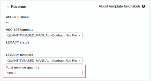 - In the Revenue template 1 and/or Revenue template 2 field, select the quantity-based revenue template. Only one revenue template needs to be quantity-based.