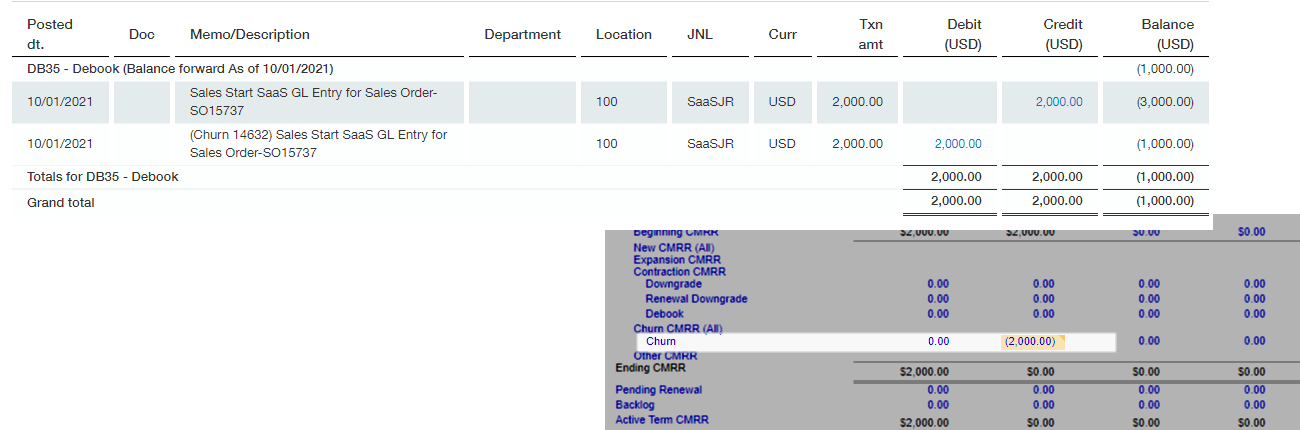 The image below shows the debook reclassified to churn, and the churn amount on the dashboard.